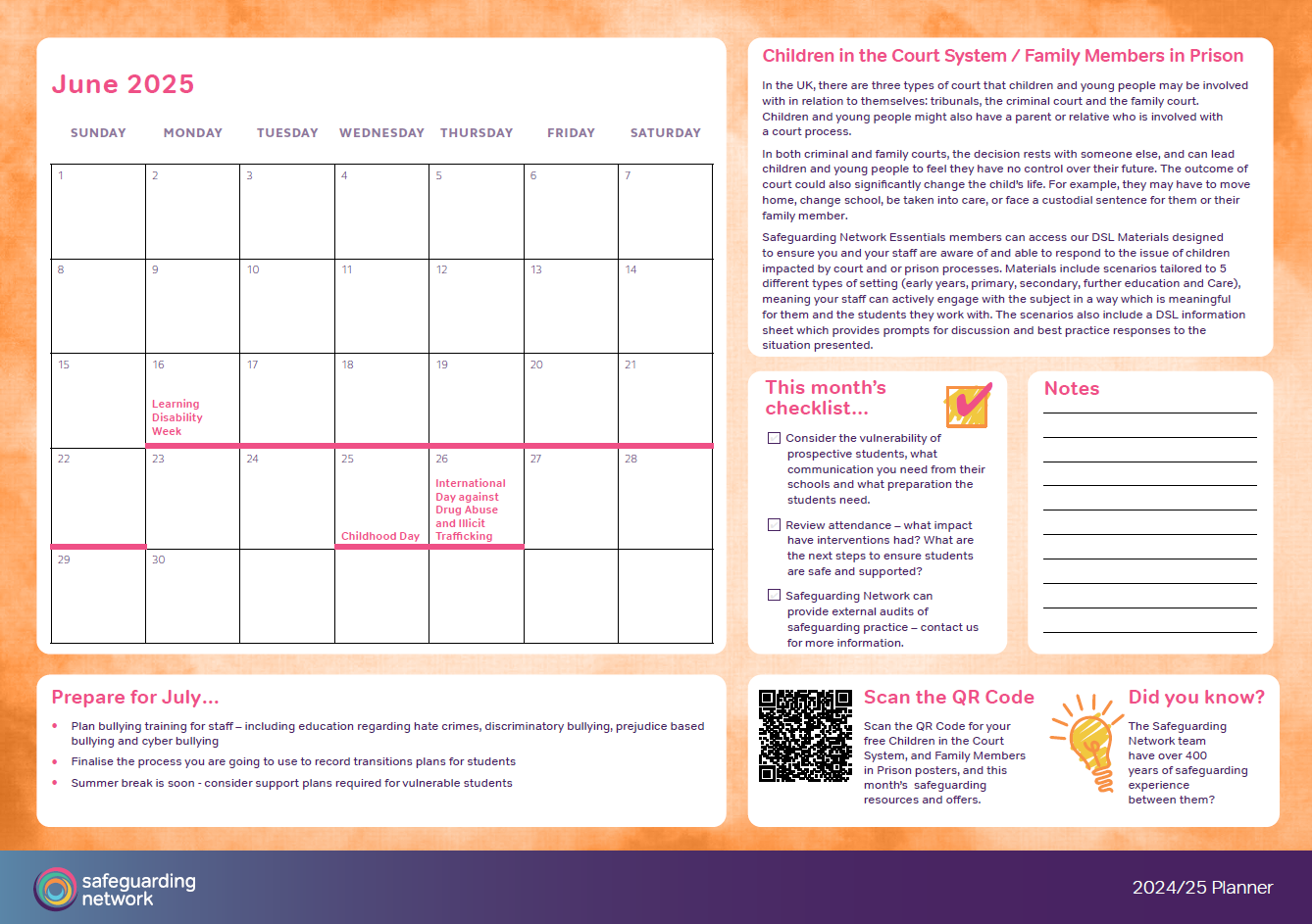This month our Planner focus is Children with a Family Member in Prison and Children involved with the Court System.