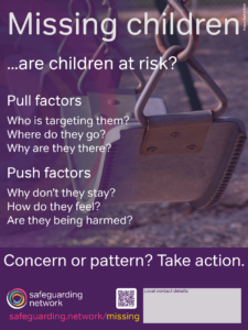- Sexual exploitation – a child may have been groomed and enticed to leave.